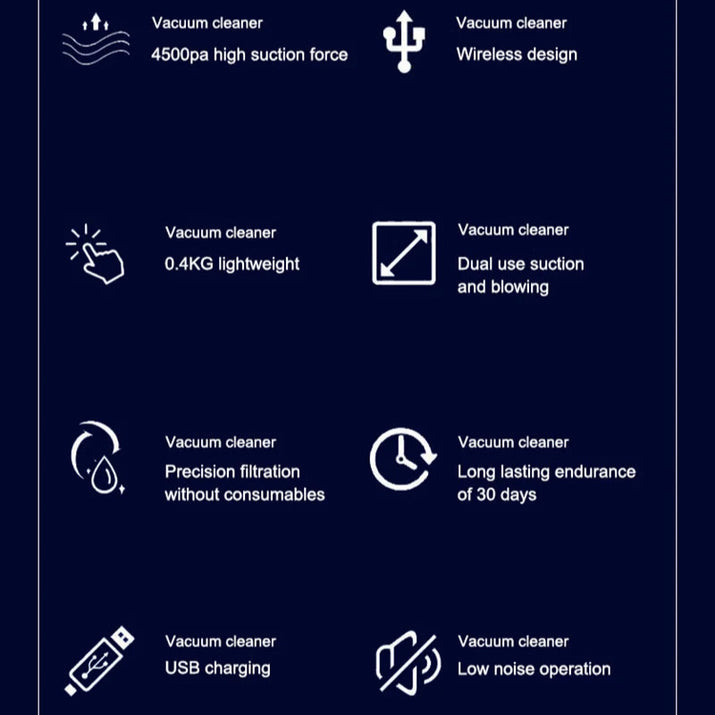 Experience effortless cleaning with this lightweight, cordless vacuum that reaches tight spaces and delivers powerful suction, making it the perfect cleaning solution for any home or car.